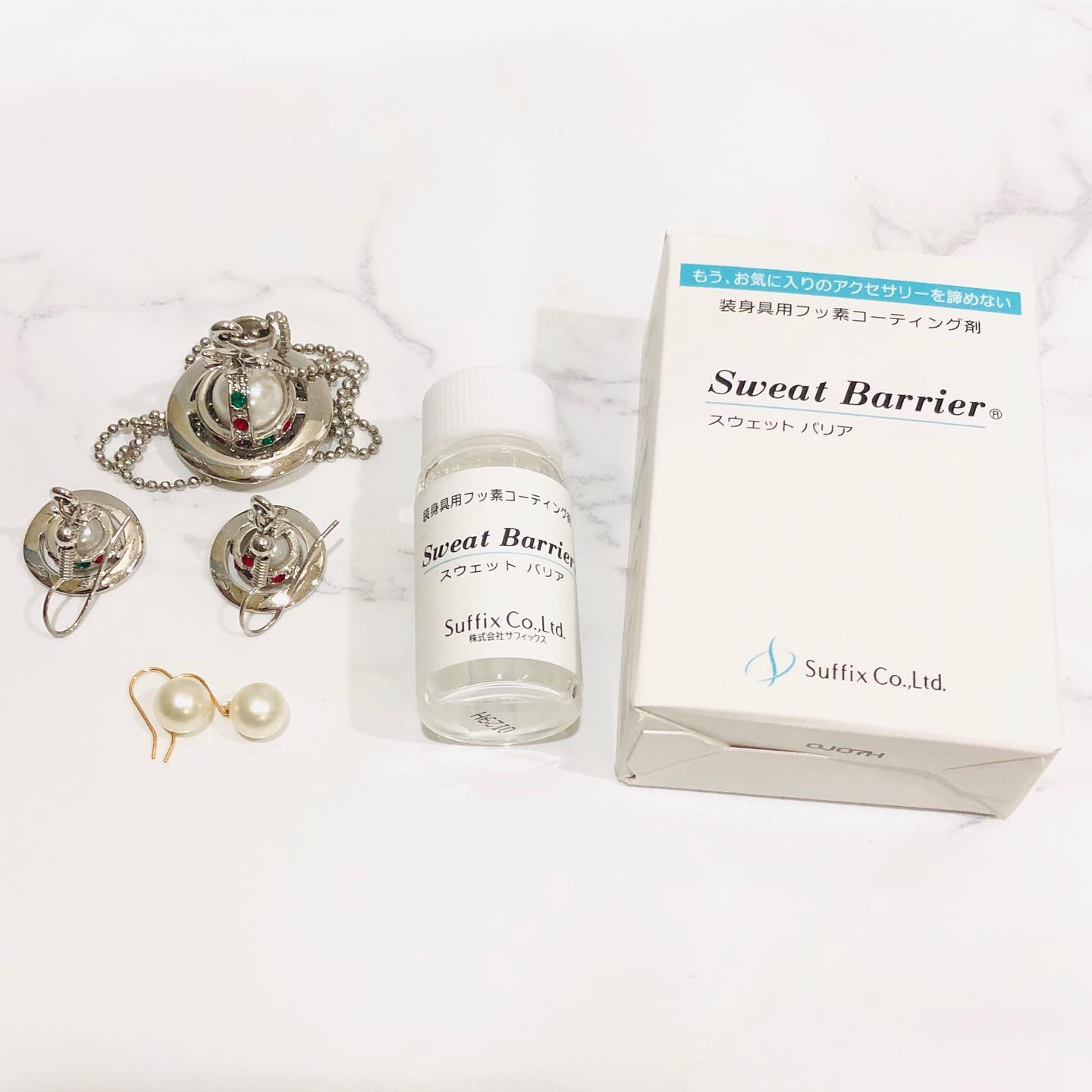 金属アレルギー対応の装身具用コーティング剤 『サフィックス スウェットバリア』 ネックレスやブレスレットは大丈夫だけど、ピアスだけは、肌に合わないと耳朶が膿んでくるので悩んでいました。 そこでスウェットバリアを知って使ってみたら、お気に入りのアクセサリーも使えるようになりました❣️ 使い方はとっても簡単☺️✨ ①アクセサリーのゴミや油分を取り除く ②スウェットバリアを塗布(筆や綿棒で付けるor浸し置き) ③乾かす(30秒速乾) 簡単な作業なのに長時間効果が続くのが嬉しい😊💕 大事なお出かけ前に準備すれば安心してアクセサリーを使えるのでオススメです😊✨ #スウェットバリア #sweatbarrier #金属アレルギー #金属アレルギー対応 #金属アレルギー対策 #metallicallergy #monipla #harvescosmetics_fan