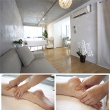 ゲルマニウム→脚裏面リンパマッサージ+もみだし→脚表面リンパマッサージ+もみだし