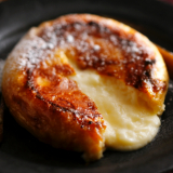 ナイフを入れた瞬間、とろっ。あふれるカスタード。焼きカラメルをパリっと割りながらナイフを通すと、温かい濃厚カスタードがとろ〜り広がる。見た目にも思わず“にやっ”とするトレンドスイーツ。