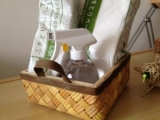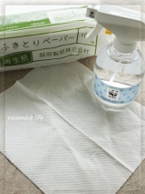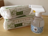 再生紙のふきとり専用ペーパーと、洗剤成分を一切含まない安心素材の重曹電解水のスプレーをセットでお届けします。