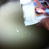 ①ボールに水を入れ、ベジクリーンを入れかき混ぜます。