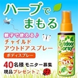 ハイムファンサイトファンサイト参加中 ハイム化粧品株式会社様の、チャイルドアウトドアスプレー のお試しの時間です♪これからの行楽シーズンにオススメな商品です^^7つの無添加で、お子様にも使える優しいつけ心地なので、1歳以上のお子様から、肌の弱い大人の方までお使いいただけます 敏感肌パッチテスト済… 2016/05/25