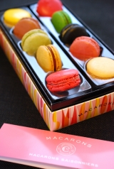 アンリシャルパンティエのマカロン 未来系なパッケージ プリントもカラフルで、開けるのが楽しくなっちゃいます ショコラ、キャラメル、シトロン、ピスターシュ、フレーズの定番フレーバー(左列)に、 木いちご、抹茶、さくらんぼ、メープル&チーズ、黒いホワイトチョコレートの季節のマカロン(… 2012/05/13
