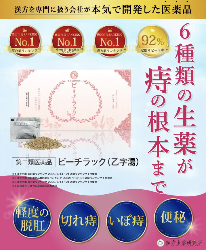 ※Instagramに投稿する際には #痔 #乙字湯 #ピーチラック #漢方生薬研究所 #monipla #herbali_fan のハッシュタグをつけて投稿してください!