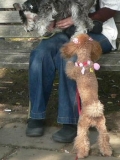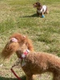 手作り革工房の株式会社エルブから送っていただいたこの、最高に可愛いチョークをつけてお散歩です可愛いチャームが沢山付いていて最高!!でも、ティナが邪魔に思ってカミカミしちゃうかな?そんな心配は全く無く本人ものすごくお気に入りの様子ですお天気が良いので、お友達に沢山会いました「ワッ!ティナちゃん可愛い… 2009/10/24