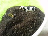 前回の記事に載せたできあがったときの写真です 昨日は実家に泊まっていたのですが 帰ったら 芽がでててびっくりしました! こんな感じです どんな感じかアップにすると 土が盛り上がってきました ここから これから芽がどんどんでてくるんでしょうね … 2011/07/31