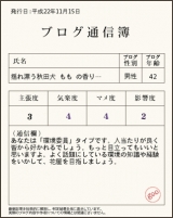 我が家の同居人を紹介します 僕の母が大切にしていた「ももドール」といいます ちょっとポーズをとってもらいました ももドール posted by (C)ももパパ 通信簿の結果は花屋さんを目指しましょう って言っても、そんなマメな人間じゃないしねぇ ブログ通信簿 posted by (… 2010/11/15