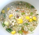 野菜、玄米、雑穀、寒天など、食物繊維やミネラルを豊富に含んだ12種類の素材を食べるスープ。