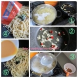 【原材料名】 調味みそ:米みそ(大豆:遺伝子組換えでない)、食塩、しじみエキス、魚しょう(魚介類を含む)、調味料(無機塩等)、酒精、酸味料 具:オルニチン顆粒(デキストリン、オルニチン)、わかめ、しじみ、ねぎ、調味料(アミノ酸等)、カラメル色素、香辛料抽出物、酸化防止剤(ビタミンE)