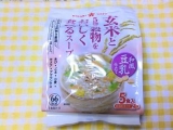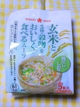 ひかり味噌さんで販売されている「玄米と5種の穀物スープ」 は全部で3種類あり、今回それを食べ比べてみました まずは「鶏だししお味」 野菜や鶏の旨味と、ごま油の香ばしい風味を効かせたスープに、彩りを添える野菜(キャベツ、にんじん、ねぎ)が入った、優しく飽きのこない塩味スープ [玄… 2012/03/23