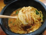 アッツアツの石鍋で食べるピリ辛の韓流麺です!
