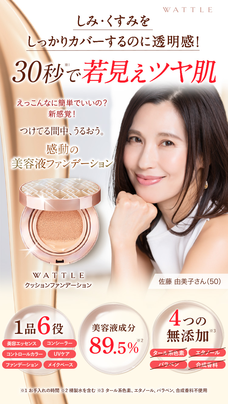 𓍯 WATTLE クッションファンデーション これ1つで6役(美容エッセンス、メイクベース、コントロールカラー、コンシーラー、ファンデーション、UVケア)を叶える、ハイカバーのクッションタイプのファンデーション!! 美容液成分89.5u0025で、素肌からうるおうの😳 ”ポンポンポン”と優しく肌にタップするだけで、あっという間にメイク完了! ほどよいカバー力でツヤ感でるしおすすめです👏🏻👏🏻 #PR #株式会社grateful #クッションファンデ #UV対策 #時短コスメ #ホコニコ #WATTLEクッションファンデーション #ワトルクッションファンデーション #monipla #hoconico_fan 2023/12/06
