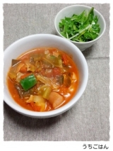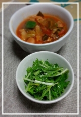 本日の献立*ミネストロ―ネ*水菜のマリネ昨日からちょこっとづつ残った野菜と昨日の煮〆に使った鶏肉の皮も刻んでトマトの水煮缶で煮込ん始め今日仕上げにピーマンとソーセージを追加したん好みで粉チーズやタバスコトッピングするん水菜はしっかり水分切ってレモンの皮は刻んで、実は絞ってチリソルトとバジルオイルで和… 2014/12/03
