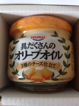 HOKO食のスマイルショップさんから、『具だくさんオリーブオイル 3種のチーズ仕立て』が届きました 以前、『具だくさんの食べるオリーブオイルスプレッド』 というのを使ったことがあったけど、今度は娘の大好きなチーズ入り こんなに 他の粒々は、アーモンドやパン粉、玉ねぎ等々 本当に具沢山… 2015/04/29