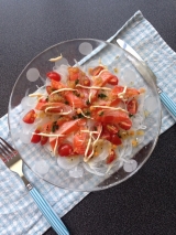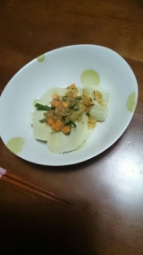モニプラで頂いた具沢山のオリーブオイル「3種のチーズ仕立て」で、作ってみました!新玉ねぎとサーモンのカルパッチョ新玉ねぎを薄切りにして水でサラッと洗いますプチトマトを4つに切り玉ねぎの上に散らしますその上に、サーモンを乗せますそこで、「具沢山のオリーブオイル」の出番です上からサラリとかけます… 2015/04/18