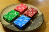 プレーンとアーモンド入りには、ひとつひとつ丁寧に包装された商品に8種類のきれいな花ラベルを使用しております。