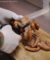 かに汁が溢れ出す、「これぞ本物の毛がにの旨さ!」