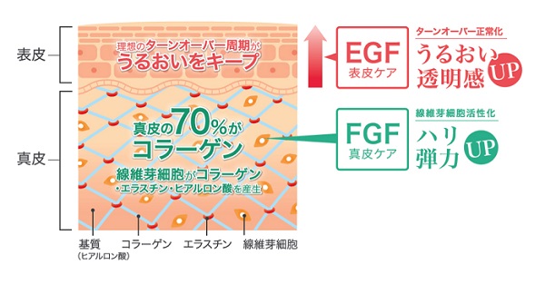 >>EGF・FGF、ダブルの効果でエイジングケア