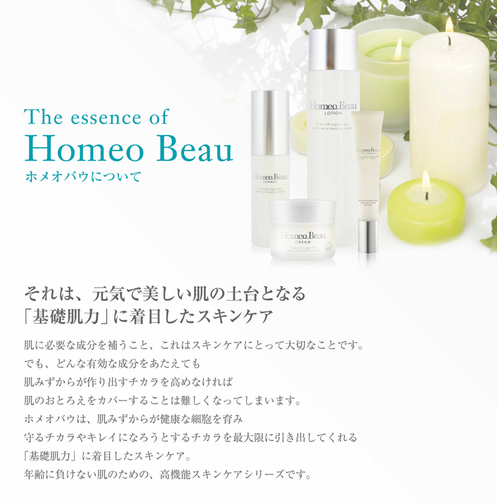 ホメオバウは、肌みずからが健康な細胞を育み守るチカラやキレイになろうとするチカラを最大限に引き出してくれる「基礎肌力」に着目したスキンケアシリーズ
