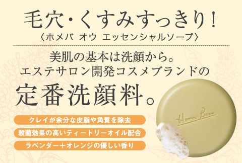 “落とす”ことにこだわった「ホメオバウ エッセンシャルソープ」はお肌に優しいといわれる弱酸性ではなく、あえて弱アルカリにphを調整しています。