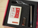 交流、直流両用のごく弱い電流が流れるポールでフェイスラインを軽くマッサージ、しわ対策、リフトアップ、妊娠線対策にも使える優れもの。9V電池で作動する安全設計