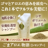 昔から髪に良いとされているゴマやアロエをたっぷり含んだ栄養浸透型シャンプー「ごまアロエ物語」。
