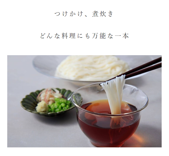 だし本来の味と⾹りをとれたてそのままに感じていただける本商品は、つけかけ、煮炊きと万能にお使いいただけます。これまでの「つゆ」とは⼀線を画すだしつゆをぜひご堪能ください。