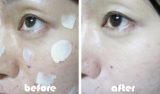 普段使ってる化粧下地比較、零れ落ちそうなくらいさらさらテクスチャー。 本当に色補正機能つき美容液とゆう感じ。 洗顔後スキンケアしたお肌にポンポン♪ 洗顔後と比較すると気になるソバカスと毛穴が大分カバーされてる(ヽ>ω