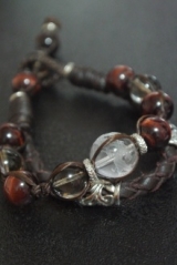 『天然石アクセサリー星の種』さんのグランディブレス かっこよくてご紹介 ワタシに届いたのは、水晶×レッドタイガーアイ×スモーキークウォーツの革ブレスヾ(@°▽°@)ノ レザーとメタルパーツと天然石のバランスがめっちゃ個性的でオシャレ 中心にある存在感抜群の水晶、大きさがなんと1… 2013/09/06