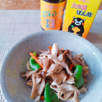 . くまモンがデコポンを抱えているパッケージがとっても可愛らしいポン酢💛 【火の国 ポン酢】 熊本のデコポン果汁たっぷりの甘すぎないバランスのいいすっきりしたお味のポン酢です。 甘味料・着色料・保存料・香料不使用なのも嬉しい(*'ω'*)♡ 今回は秋の味覚といえばキノコ。 まいたけをたっぷり使ったおかずとさっぱり食べられる浅漬けを作りました🥢 <マイタケと鶏肉のさっぱりポン酢炒め> ①鶏むね肉1/2枚は茹でて手で割いておく。 ②人参1/5本を千切りにし、ピーマン2個を乱切りにする。 ③ごま油を小さじ1ひいて熱したフライパンで②を炒め、マイタケ1パックを加えて火が通るまで炒める。 ④フライパンに①とポン酢大さじ2・塩少々を加えて汁気がなくなるまで炒めたら完成。 <さっぱりポン酢の浅漬け> ①キュウリ2本を5mmに切ってポリ袋に入れ、ポン酢大さじ2・醤油小さじ1を加えて揉み込んで冷蔵庫で寝かせる。 ②1時間以上馴染ませたら完成。 デコポンのまろやかな酸味と甘みのバランスが絶妙で酸っぱいものが苦手な方でも何にでもかけたくなっちゃうと思います😋 冬にはお鍋のつけダレにもピッタリだなと思いました🍲🥢 #PR #ホシサン株式会社 #ホシサン #簡単レシピ #時短レシピ #おうちごはん #和食ごはん #料理好きな人と繋がりたい #時短料理 #ポン酢 #デコポン #ポン酢レシピ #ポン酢大好き #chizuisoの当選報告 #懸賞 #当選報告 #monipla #hoshisan_fan 2023/09/17