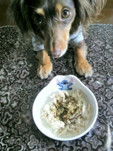 ・ドッグフードや手作り食を20%減らし、その分量(20%)を加えて与えて下さい。