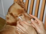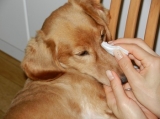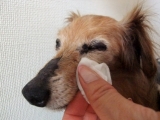 2、ローションをよく振り、布やコットンにたっぷり染み込ませて、涙やけしている部分にしっかりなじませます。この時、ローションを染み込ませた布等を、汚れている部分に2~3分あてておくと、より効果的です。