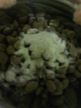 モニプラ さんよりモニタープレゼントで頂いた 帝塚山ハウンドカム さんの デンタルクリーンワンコの口臭歯石予防用のデンタルケア用品です与え方はとっても簡単いつものフードにスプーン1〜2杯振りかけるだけでOKチーズの匂いに我が家の2ワンズもワクワク 2011/03/28