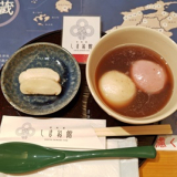 日比谷にある島根県のアンテナショップ 「しまね館」でお雑煮をいただきました ぜんざいに紅白のお餅が入っています 2025/01/10