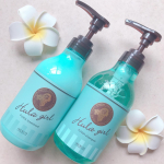 ハワイアンボタニカル成分とオーガニックエッセンスを配合し、ビタミンCをもとにした独自成分で髪のキューティクルを補修するヘアサロン専門メーカーが研究開発したフラコスメ「フラガールシリーズ」のシャンプーとトリートメントセットです。