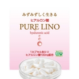 PURE LINO(ピュアリノ)は、いつまでも美しく、輝きを保つことを願う女性の肌のために開発された「ヒアルロン酸美容サプリ」です。PUREは「純粋」。LINOは「輝き」。この名前にふさわしく、潤いのある若々しい肌を期待できるのは、1カプセルに「100mg」のヒアルロン酸を贅沢配合したからこそ。