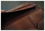 ソフトな牛革に洗い(ウォッシュド加工)をかけ、独特の風合いと表情を持たせたヴィンテージ感あふれる素材。レトロなデザインを残しつつ、実用性を妥協せずより使いやすく収納性豊富な内部を実現しています。