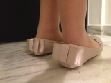 そんなお声にお答えして、プレーンなバレエシューズのかかとに、上品で華やかな同素材のリボンを付けました。