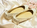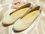 そんなお声にお答えして、プレーンなバレエシューズのかかとに、上品で華やかな同素材のリボンを付けました。