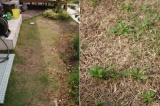 clearfix"> 芝生その後 悲惨な状態だった、庭の芝生(画像は、5月に撮影)その時の記事はこちら→□現在の芝生夏の間は、あまりに暑くて、芝刈りは、2回しかできませんでしたが、芝を刈った後に、イデコンポガーデンEVと、シバキーププラスαと散布しました一部、裸地化しているところがあります… 2013/10/09