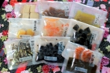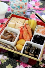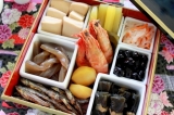 ■ 田作り25g、なます60g、丹波黒黒豆80g、手綱こんにゃく4切、ふきのうま煮60g、高野豆腐含め煮6切、にしん1口巻昆布6本、祝海老2尾、栗の甘露煮2個