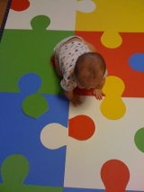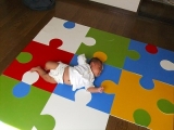基本セットA、B+ジョイント 少々お値段はするけれど 一般的なクッションマットよりも一回り大きいので のセットで畳一畳半くらいかな けっこう広範囲に敷けたよ 子供と比べるとこんな感じ … 2011/08/11
