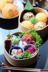 そぼろおにぎりのお弁当 先週の土曜日のお弁当です 紫キャベツのマリネ 切り干し大根と大豆の煮もの 紫芋生麩の味噌田楽 塩麹ささみとオクラのカボス和え 大根の甘酢漬け 鮭のフライ(タルタルソース別… 2016/10/30