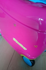 「リトローリー」をモニターさせていただきました乗って遊べるキッズトランク、リトローリー「ママやパパみたいなバッグでおでかけしたいっ!!!」 そんな子どもの願いをかなえるキッズ専用のかわいいキャリーバッグです大人ののスーツケースと同じく丈夫で軽いボディータイヤもしっかりしていますダイヤルロ… 2016/02/26