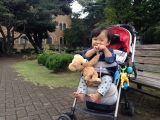 涼しくなってきたかと思ったらカンカン照りの夏日 公園の池に多くの人が集まっていました ちびひよこ、初めての水遊びに大喜び!と思いきや、不安そうな表情でした^^; 2016/10/02
