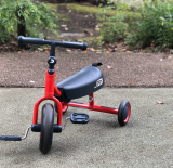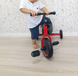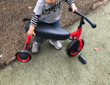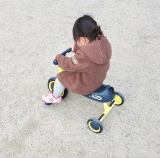 成長に合わせて自由に座れるロングシートや、楽に折りたたができるのが特徴の三輪車。2歳くらいから4歳くらいまで、長~く乗れる三輪車です。