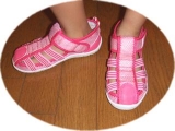 子供の足って、合わない靴を履くとすぐに魚の目ができちゃうし汗っかきだから サンダルだと足が前にすべって 歩くうちにサンダルの前の隙間から指がはみ出 2011/09/16