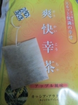 毎日爽快に!! 『 爽快幸茶 』 内容量/57g(19g×30包)ティーパックタイプ 原材料名/カッシアアラタ、紅茶(インド)、ハブ茶、香料(アップルフレーバー) 賞味期限/製造日より2年 ティパックタイプだから どこでもいつでも… 2014/03/09