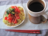 先日のごまだれ味の冷し中華に続いて、 醤油味の方も美味しい 麺もつるっつるでgood(^◇^) 今の季節の冷し中華って、ほんとみんな大好きだよね 【作り方】 1もやしは茹で、玉ねぎはスライスし、焼き豚はサッとあぶる 2麺を茹でて冷水にとり、器に盛る 3もやしと玉ねぎと焼… 2016/06/19
