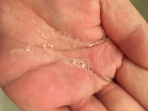 オシャレなボトルで職場へ持参して使いやすいです 一度に使う量は手のひらの写真です たったこれだけの量でミントのようなお花のような香りに包まれ、さわやかな気分になれます 特に就寝前に使うのがオススメ 翌朝寝起きの口臭やネバつきが抑えられます 是非皆さんも試してみてください 2019/01/20